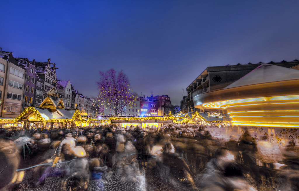 Η Κολωνία είναι αγαπημένος προορισμός για τις εορταστικές αγορές, με πολλές επιλογές. Η μεγαλύτερη αγορά βρίσκεται στο κέντρο της πόλης, δίπλα στον καθεδρικό ναό. Στην Markt der Engel, εκατοντάδες φώτα κρέμονται σαν αστέρια, ενώ αγγελάκια πετούν ανάμεσα σε εντυπωσιακά διακοσμημένα αετώματα.