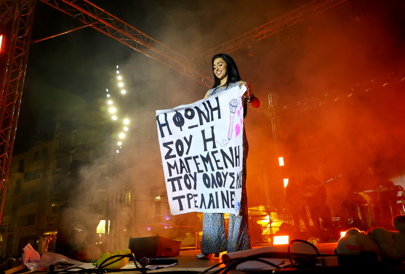 Η Αναστασία αποθεώθηκε από το κοινό, που της πρόσφερε ένα πανό με την επιγραφή «η φωνή σου η μαγεμένη που όλους μας τρελαίνει»!