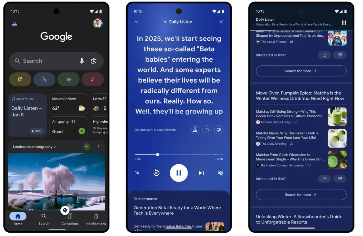 Το «Daily Listen» δημιουργεί αυτόματα πεντάλεπτα podcast, αντλώντας δεδομένα από τη ροή ειδήσεων του Discover. Με τη βοήθεια της τεχνητής νοημοσύνης, η λειτουργία αυτή προσαρμόζεται στις αναζητήσεις και τις προτιμήσεις των χρηστών, παρουσιάζοντας τις πιο σχετικές ειδήσεις με ακουστική μορφή.