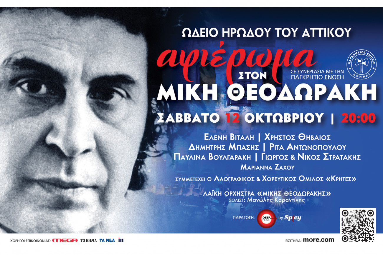 Η Spicy και η Παγκρήτια Ένωση διοργανώνουν μια μεγάλη συναυλία-αφιέρωμα στον Μίκη Θεοδωράκη, με τη Λαϊκή Ορχήστρα «Μίκης Θεοδωράκης» να ερμηνεύει μερικά από τα πιο αγαπημένα λαϊκά και λυρικά τραγούδια του μεγάλου συνθέτη. Η συναυλία θα παρουσιάσει γνωστά τραγούδια, ζεϊμπέκικα, καθώς και μελαγχολικές, λυρικές μελωδίες που αγγίζουν τις ψυχές των ακροατών.
