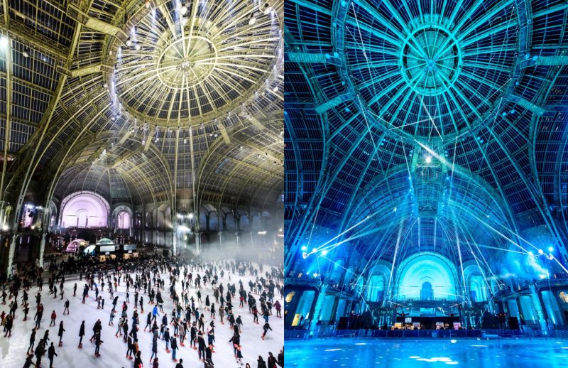 Βρίσκεται κάτω από την εμβληματική γυάλινη οροφή του Grand Palais, ένα αρχιτεκτονικό αριστούργημα στο κέντρο της πόλης. Το παγοδρόμιο των 3.000 τετραγωνικών μέτρων είναι ανοιχτό καθημερινά, με ώρες λειτουργίας που εκτείνονται έως τις 2:00 τα ξημερώματα, κάνοντας το ιδανικό για κάθε ώρα της ημέρας.