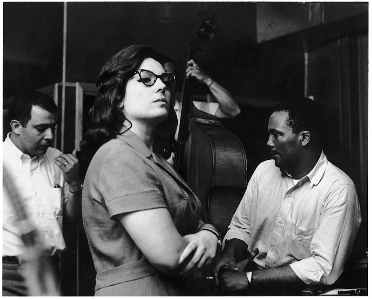 H Nάνα Μούσχουρη στο στούντιο για τον τζαζ δίσκο της, στο Background διακρίνεται ο παραγωγός του δίσκου, ο σπουδαίος Κουίνσι Τζόουνς