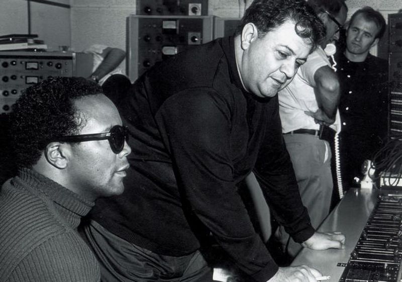 H Nάνα Μούσχουρη στο στούντιο για τον τζαζ δίσκο της, στο Background διακρίνεται ο παραγωγός του δίσκου, ο σπουδαίος Κουίνσι Τζόουνς