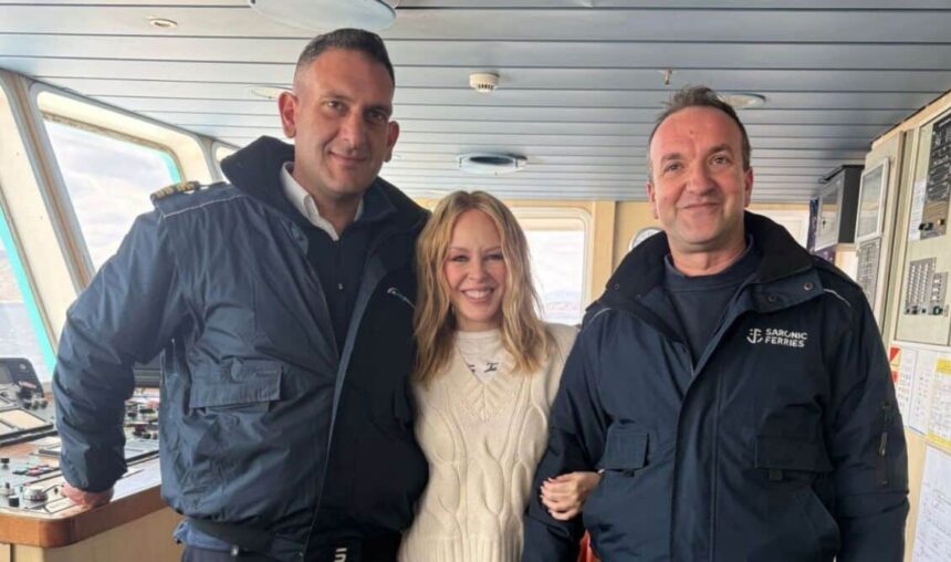 Η Κάιλι Μινόγκ βρέθηκε στην Ελλάδα και πραγματοποίησε ένα σύντομο ταξίδι στην Αίγινα την Τετάρτη 19 Μαρτίου. Η παρουσία της στο νησί δεν πέρασε απαρατήρητη, καθώς η ακτοπλοϊκή εταιρεία Saronic Ferries μοιράστηκε στα social media φωτογραφία της με το πλήρωμα, συνοδεύοντάς τη με το σχόλιο: «Θα έπρεπε να είμαστε τόσο τυχεροί»—μια αναφορά στη μεγάλη επιτυχία της τραγουδίστριας “I Should Be So Lucky”.